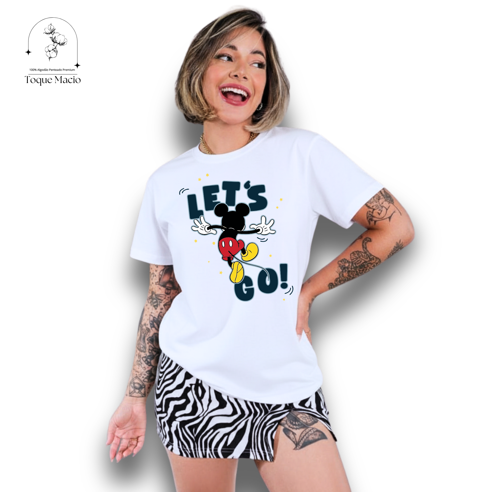 T-SHIRT MICKEY LETS GO - BRANCO