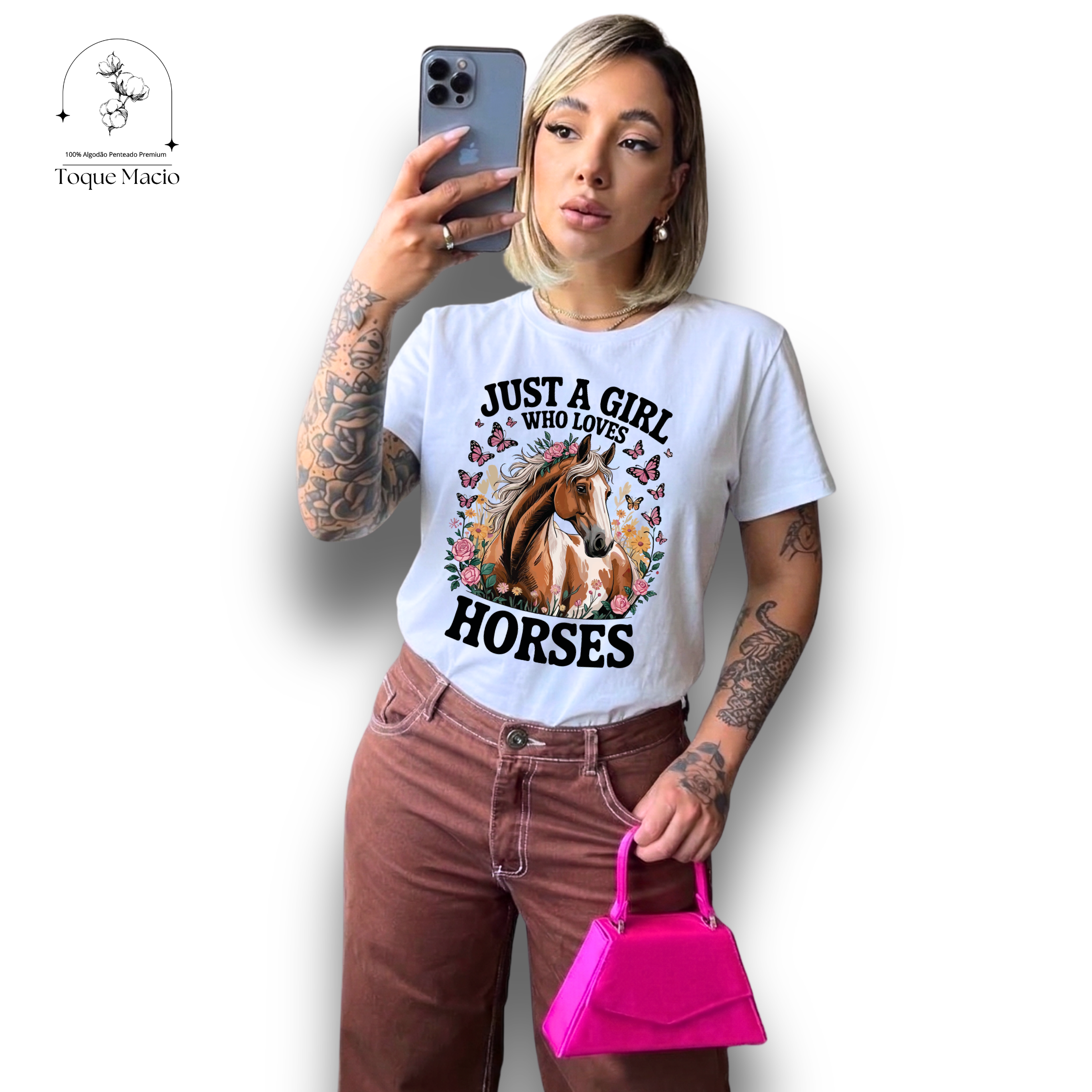 T-SHIRT JUST A GIRL HORSES - BRANCO
